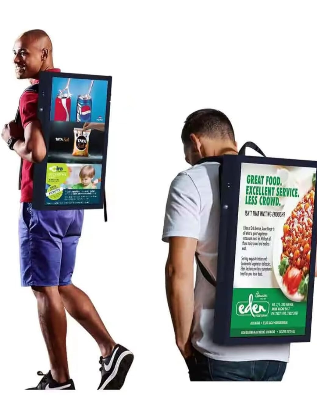 LED -ryggsekk Walker Billboard Walking Display LCD Mobile Digital Annonsebag Annonseringsmaskin Signage Portable Battery
