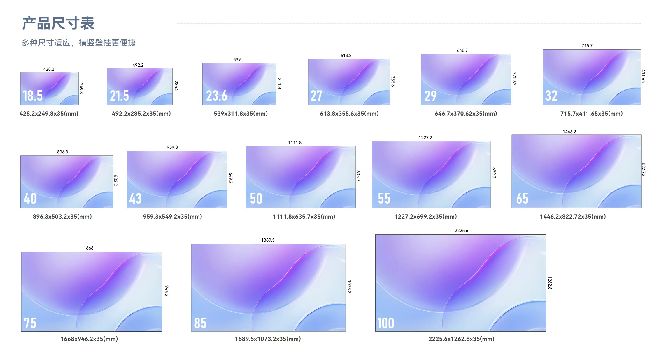 | LCD -skjermstørrelse | 21.5/32 "/43"/50 "/55"/65 "Valgfritt |